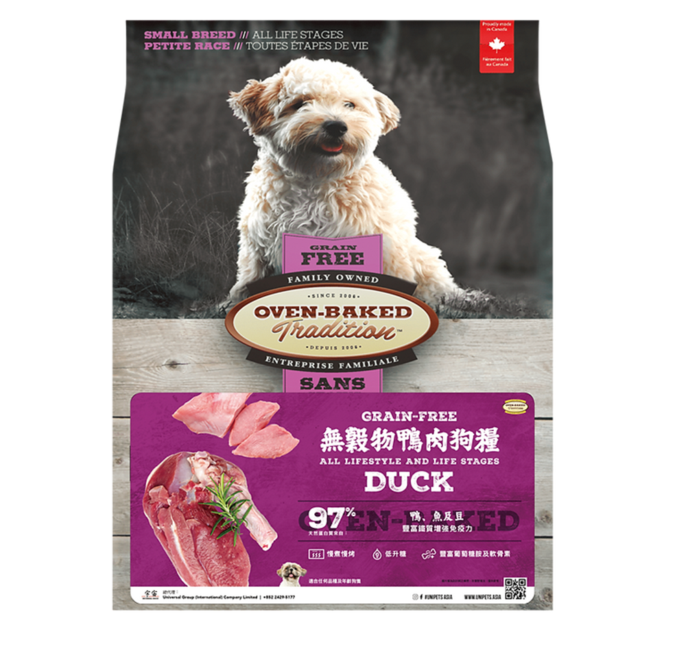 按以下按鈕新增 Oven-Baked 無穀物鴨肉細粒全犬配方 10LB 到喜愛產品列表