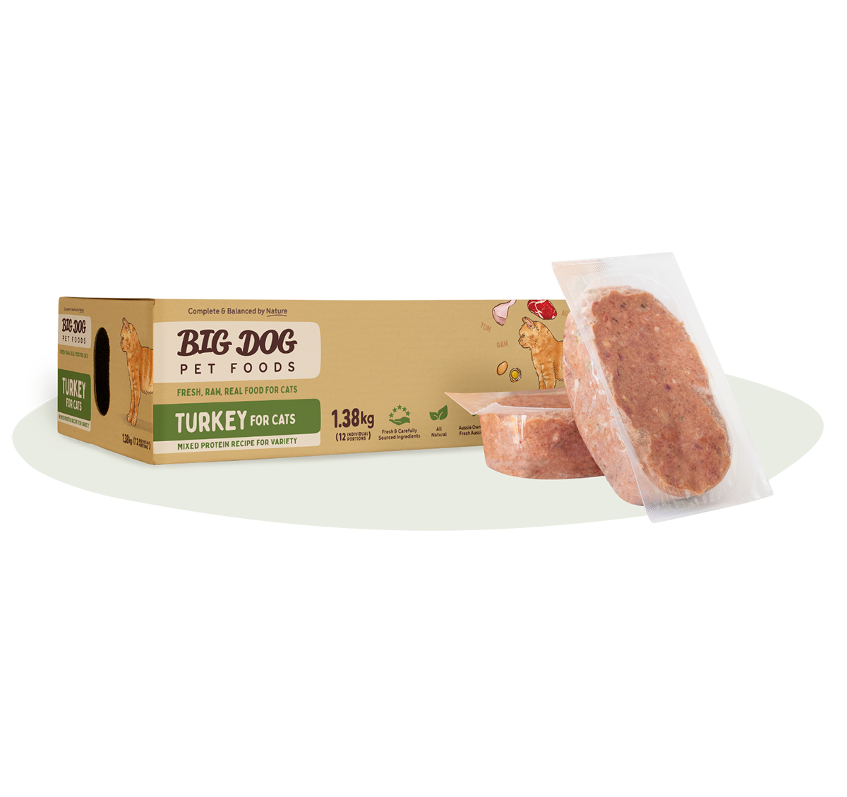 火雞肉、牛(肉、胃、肝、腎)、雞(肉、磨碎的骨頭)、時令蔬菜水果(甘荀、豆角、西芹)、小麥草、原隻雞蛋、冷壓磨碎亞麻籽、山羊乳清、洋車前子、海藻、有機富里酸