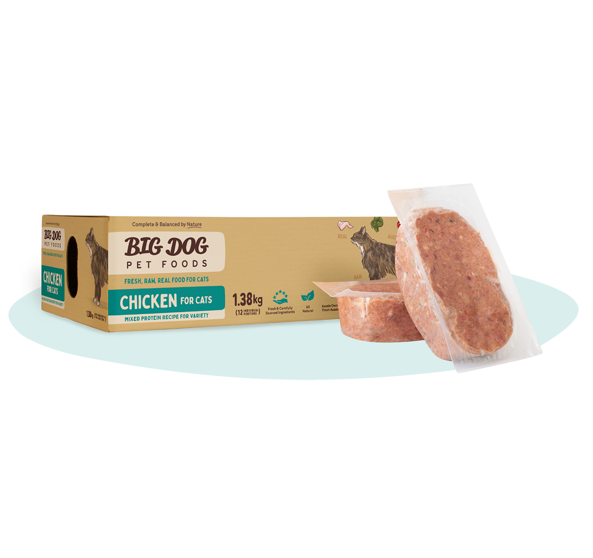 雞肉、磨碎的雞骨、牛肉、牛心、牛肝、甘荀、小麥草、大麥草、蛋、活性益生菌和益生元、紫花苜蓿、海藻