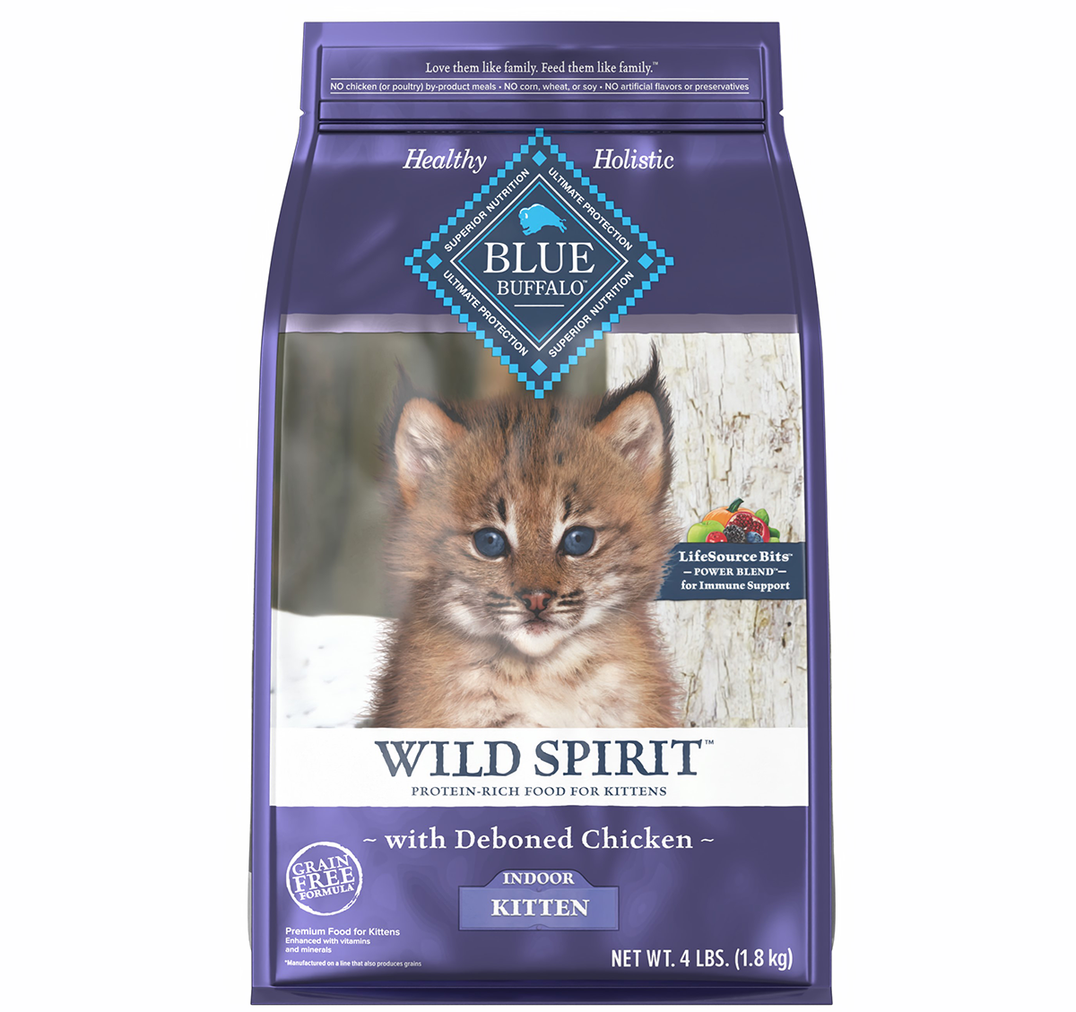 • Blue Buffalo 幼貓室內雞肉配方是美國天然寵物食品,以高品質天然食材提供多種針對不同年齡段和需求的貓糧,狗糧,除無穀物選項外、更添加抗氧化LifeSource Bits?(生命之源顆粒),強調均衡營養和健康活力,產品不含人工添加物、副產品及玉米、小麥、大豆,富含Omega脂肪酸促進皮毛健康,提供野性、原始飲食概念