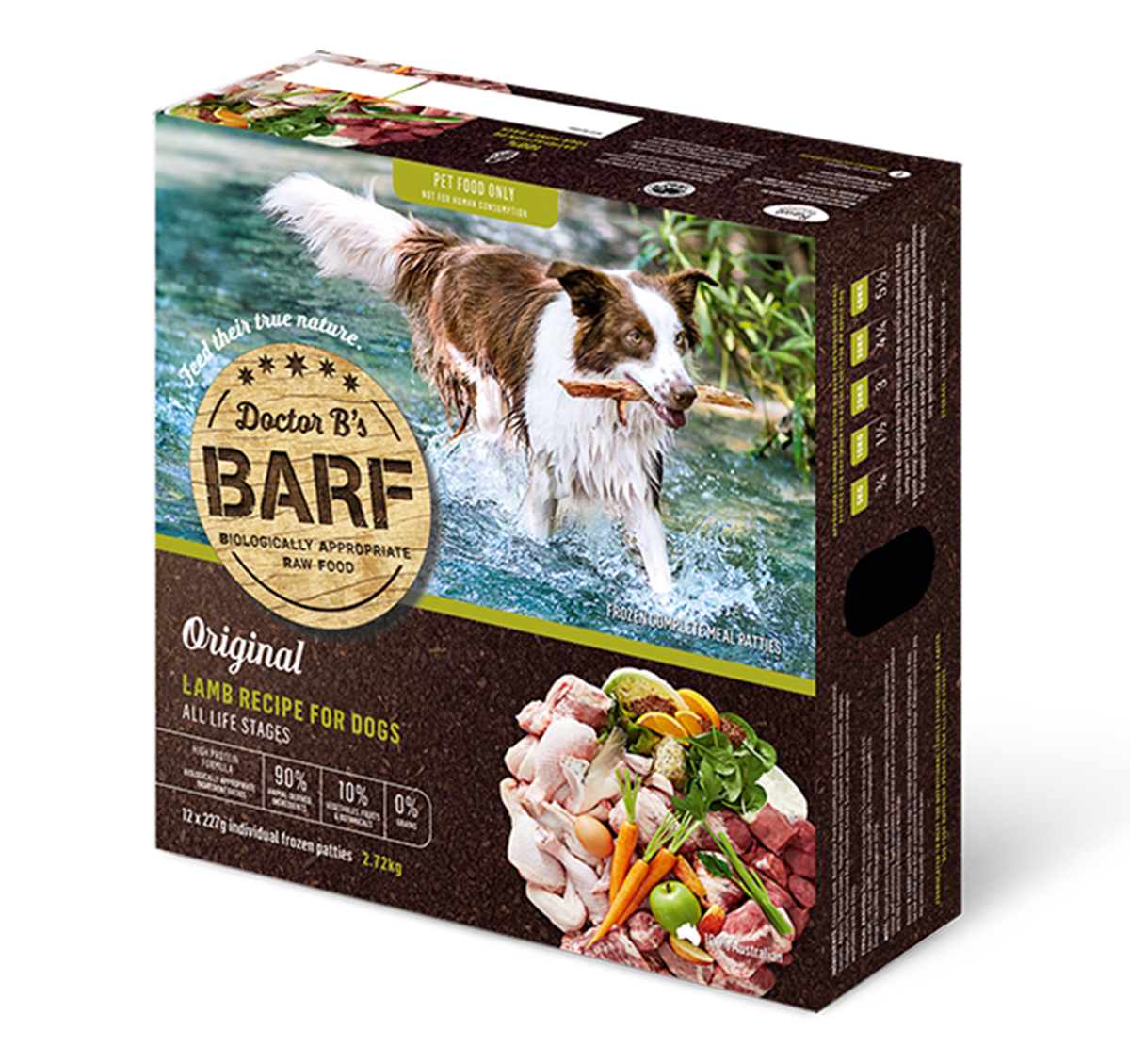 雞、羊、牛、豬(包括肉、細磨骨頭和內臟)、甘荀、蘋果、三文魚肉骨、乳酪、原隻蛋、菠菜、莙薘菜、橙、椰菜、紫花苜蓿、脫水海藻、亞麻籽、西芹、蒜頭、時令蔬菜及水果 |