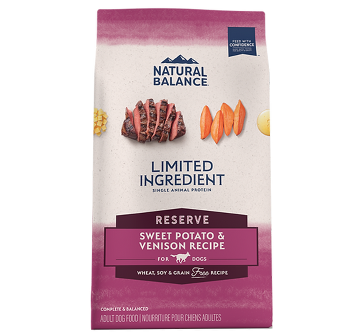 甜薯、鹿肉、馬鈴薯、豌豆蛋白、馬鈴薯蛋白、芥花籽油(以維他命E保存)、啤酒酵母、磷酸二鈣、天然調味、三文魚油(以維他命E保存)、亞麻籽、脫水馬鈴薯、碳酸鈣、鹽、蛋胺酸、氯化膽鹼、礦物質(蛋白鋅、硫酸鋅、硫酸鐵、蛋白鐵、硫酸銅、蛋白銅、硫酸錳、蛋白錳、碘酸鈣、亞硝酸鈉)、牛磺酸、維他命(維他命E、維他命B3、D泛酸鈣、維他命A、核黃素、維他命B1、維他命D3、維他命B6、葉酸、生物素、維他命B12)、維他命E(用作防腐)、乳酸、檸檬酸(用作防腐)、迷迭香萃取物、綠茶萃取物、薄荷萃取物 |