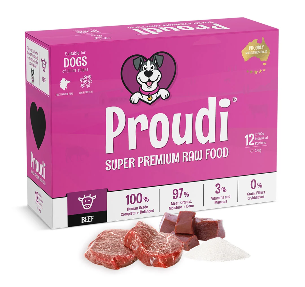 00%澳大利亞牛肉(包括牛肺、牛心、牛肝和無骨牛肉)、膠原蛋白、南瓜籽、真空烘乾的碎骨、亞麻籽、乾燥海帶、碳酸鈣、硫酸鋅、錳螯合物、混合生育酚、維生素D。 |
