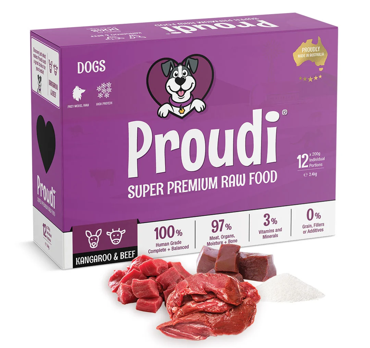 100% Australian boneless kangaroo, 100% Australian beef (includes beef lung, boneless beef, beef heart, and beef liver), pumpkin seeds, collagen, ground vacuum dried bone, linseed, calcium carbonate, dried kelp, zinc sulphate, manganese chelate, and vitamin D. | ||